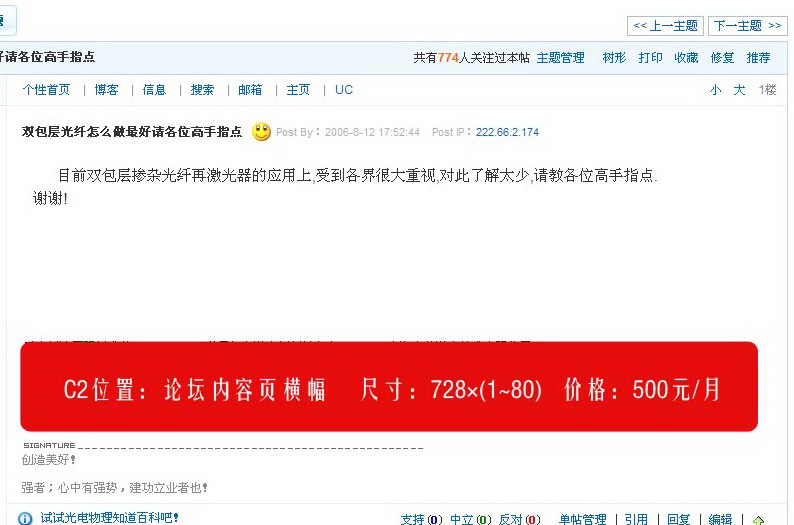 共有151943人关注过本帖树形打印复制链接主题:想在论坛推广你的企业或者产品吗?看这里 |